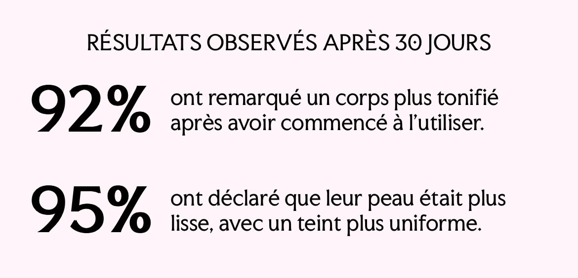 La majorité de nos utilisatrices constatent une peau plus lisse et plus douce après 10 à 15 jours d’utilisation régulière.