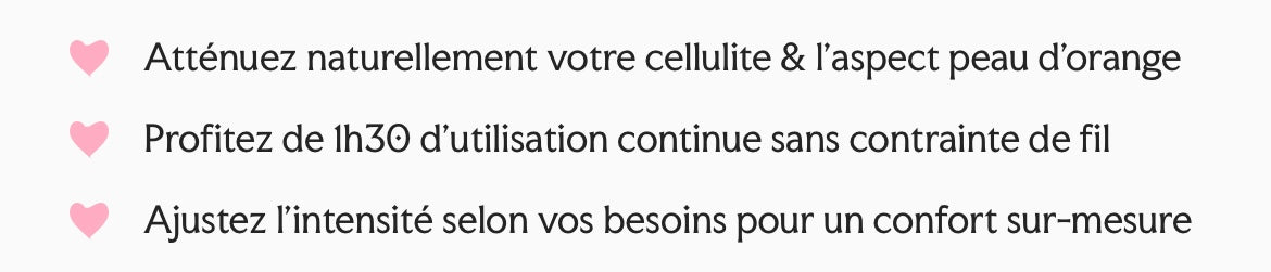 Le mouvement ciblé de l’appareil stimule la micro-circulation sous-cutanée, ce qui permet d’oxygéner les tissus et de favoriser l’élimination naturelle des toxines.